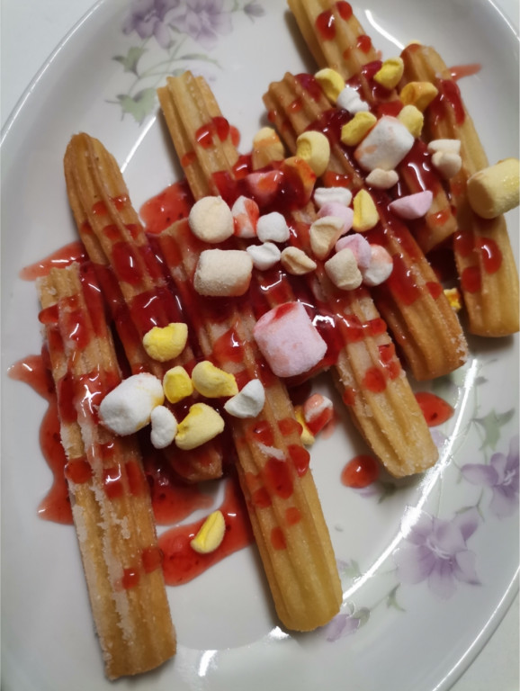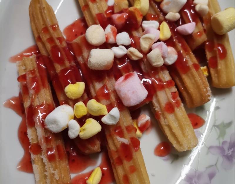 Churros eperöntettel, pillecukorral