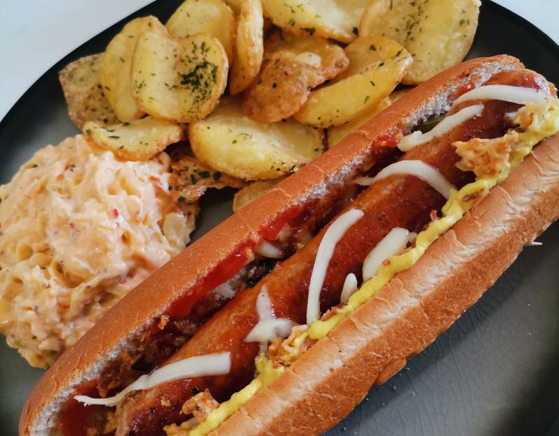 1 adag Hot-dog menü pikáns grillkolbásszal
